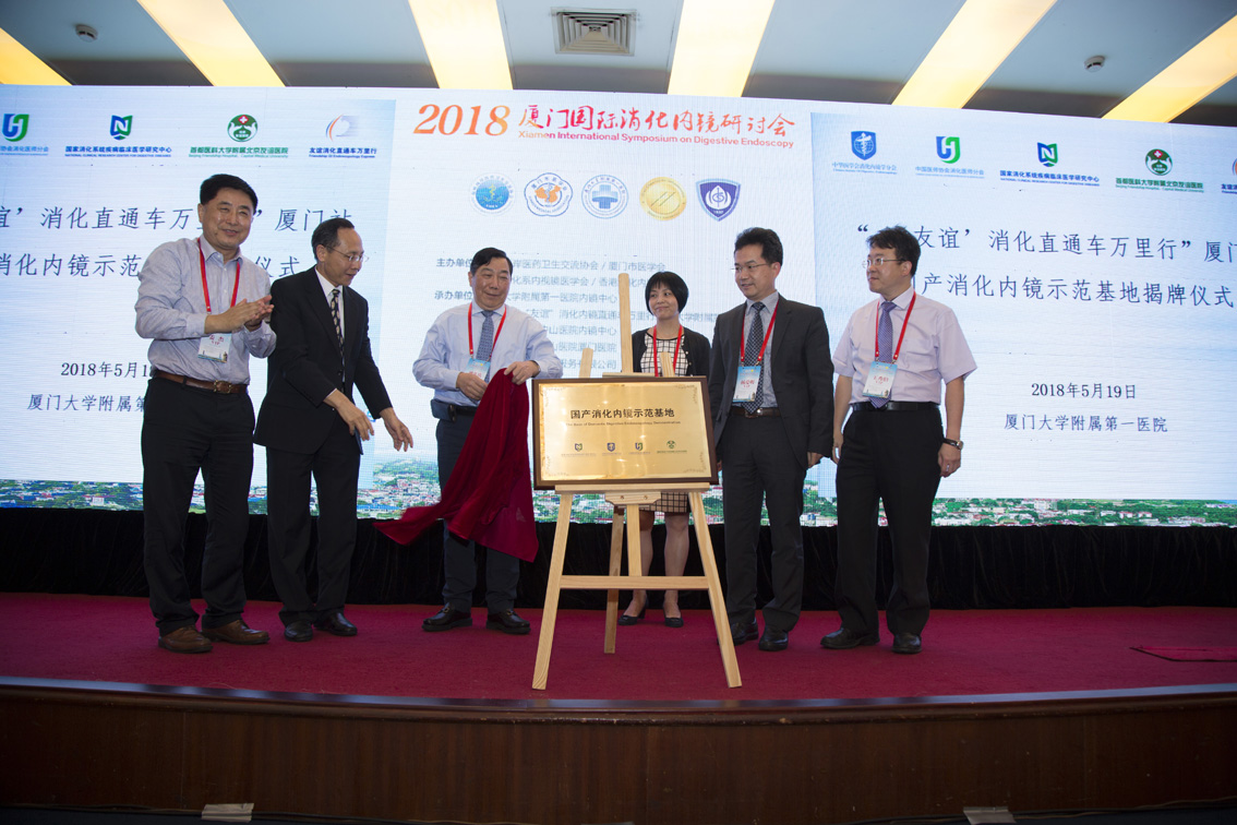 直通車廈門站的活動(dòng)借大會(huì)東風(fēng),邀請(qǐng)了來自北京協(xié)和醫(yī)院的楊愛明教授、復(fù)旦大學(xué)附屬中山醫(yī)院的姚禮慶教授,廈門市衛(wèi)生和計(jì)劃生育委員會(huì)的孫衛(wèi)主任以及臺(tái)港澳代表一起為廈門大學(xué)附屬第一醫(yī)院進(jìn)行了“國(guó)產(chǎn)消化內(nèi)鏡示范基地”的授牌儀式。