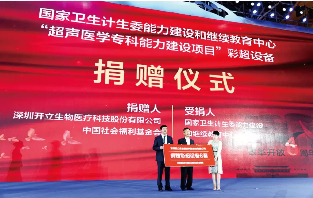 作為民族超聲產(chǎn)業(yè)的代表企業(yè),開立醫(yī)療通過中國(guó)社會(huì)福利基金會(huì)向國(guó)家衛(wèi)計(jì)委能力建設(shè)和繼續(xù)教育中心“超聲醫(yī)學(xué)??平ㄔO(shè)項(xiàng)目”捐贈(zèng)8套彩色多普勒超聲診斷系統(tǒng),用于支持貧困地區(qū)基層超聲醫(yī)學(xué)的??颇芰ㄔO(shè)。國(guó)家衛(wèi)生計(jì)生委能力建設(shè)和繼續(xù)教育中心主任楊愛平先生、中國(guó)社會(huì)福利基金會(huì)秘書長(zhǎng)蔡君翼女士、開立醫(yī)療超聲銷售總監(jiān)王宏偉先生共同出席了彩超捐贈(zèng)儀式。