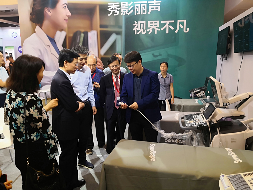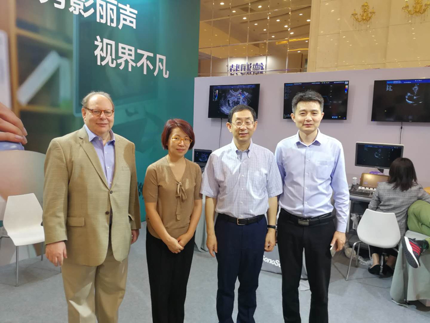 中華醫(yī)學(xué)會(huì)超聲分會(huì)主任委員姜玉新教授一行參觀開(kāi)立展臺(tái)