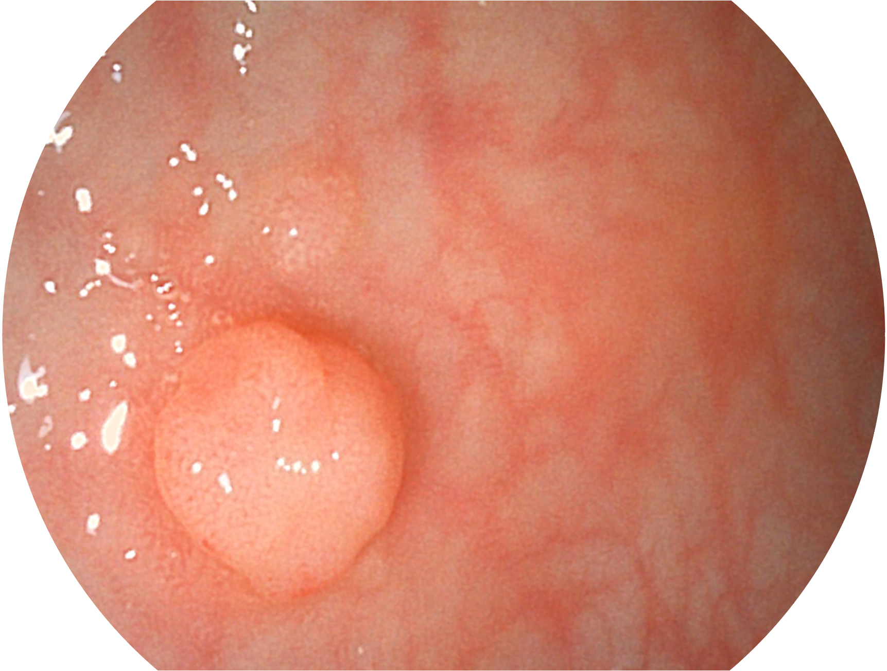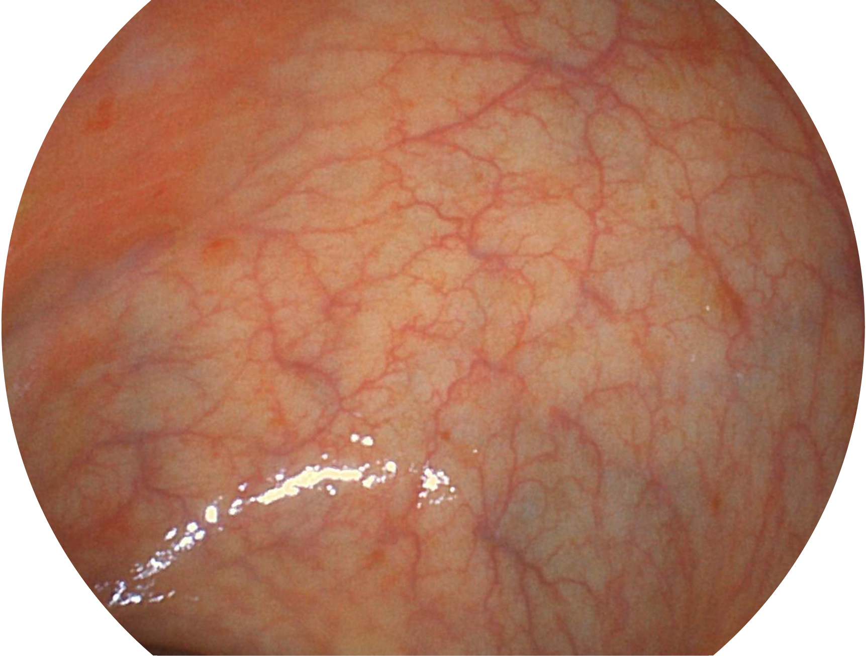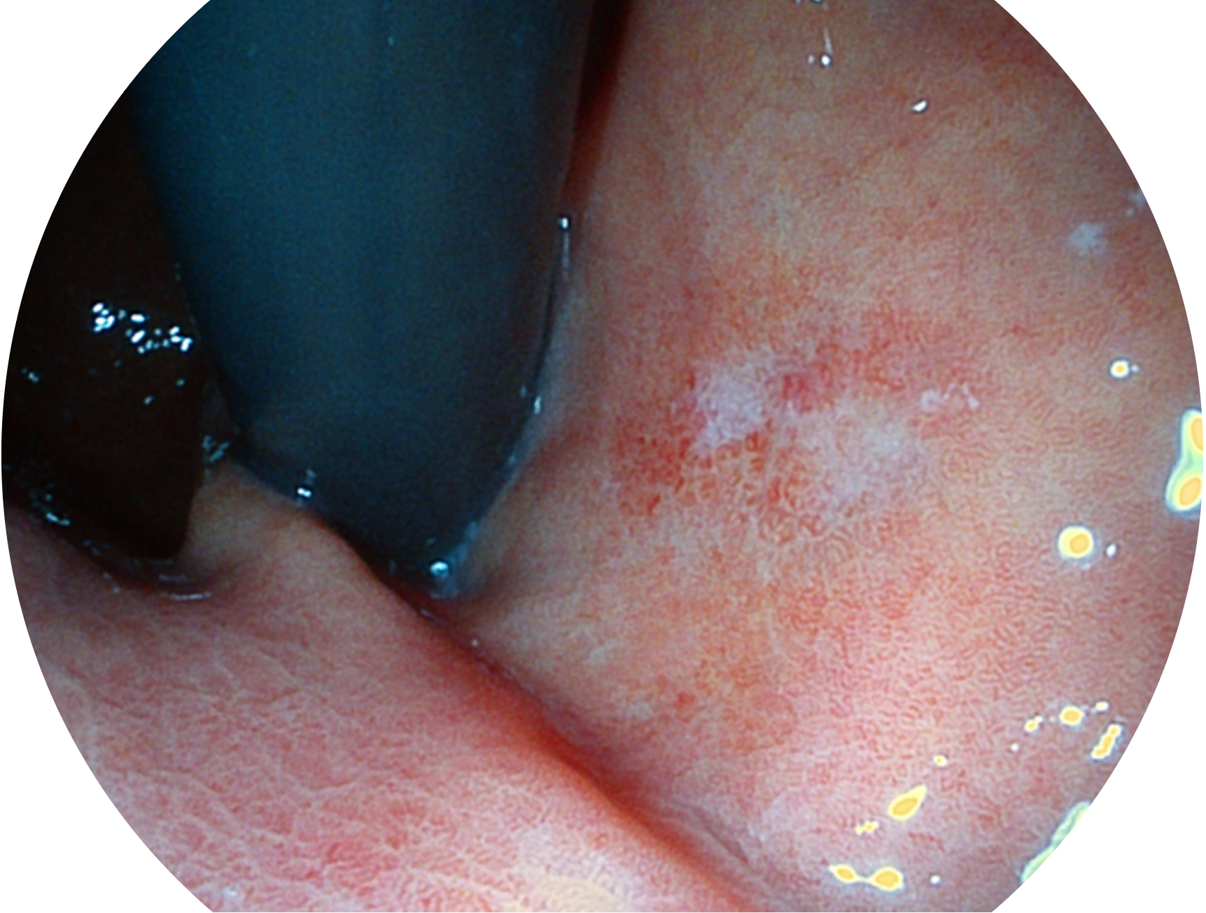 SFI技術(shù)是結(jié)合特定光譜照明與數(shù)字光譜濾波,實(shí)現(xiàn)高亮度特殊光成像。染色模式下,不改變粘液、食物殘?jiān)?、糞液等基本顏色,在保持與白光照明相似的圖像色調(diào)的同時(shí)突顯了圖像顏色的紅白對比度,且在遠(yuǎn)距離觀察的情況下具備與普通白光模式相同的圖像亮度,有助于消化道疾病的大范圍掃查和早癌篩查。
