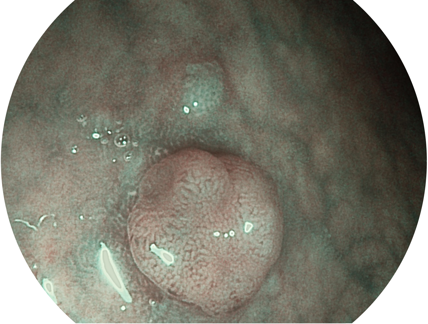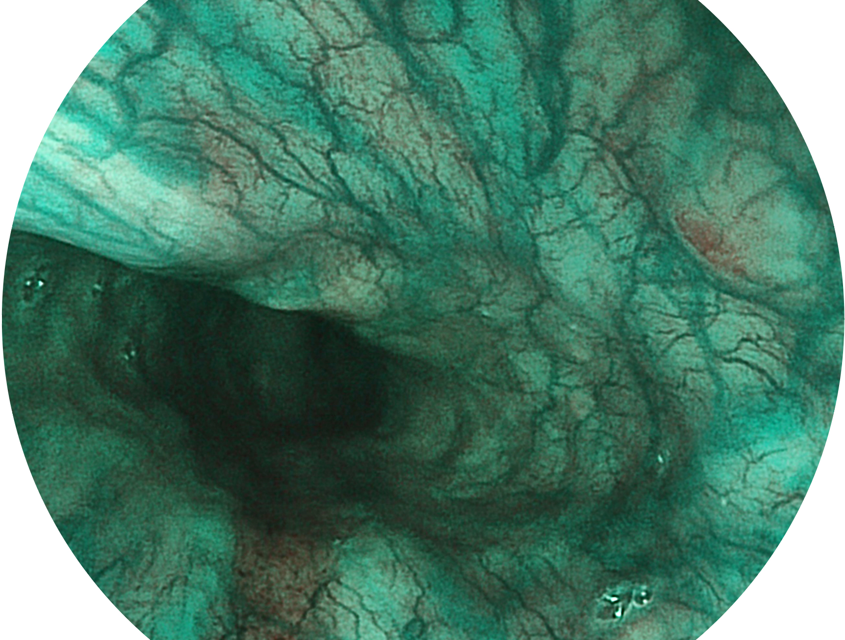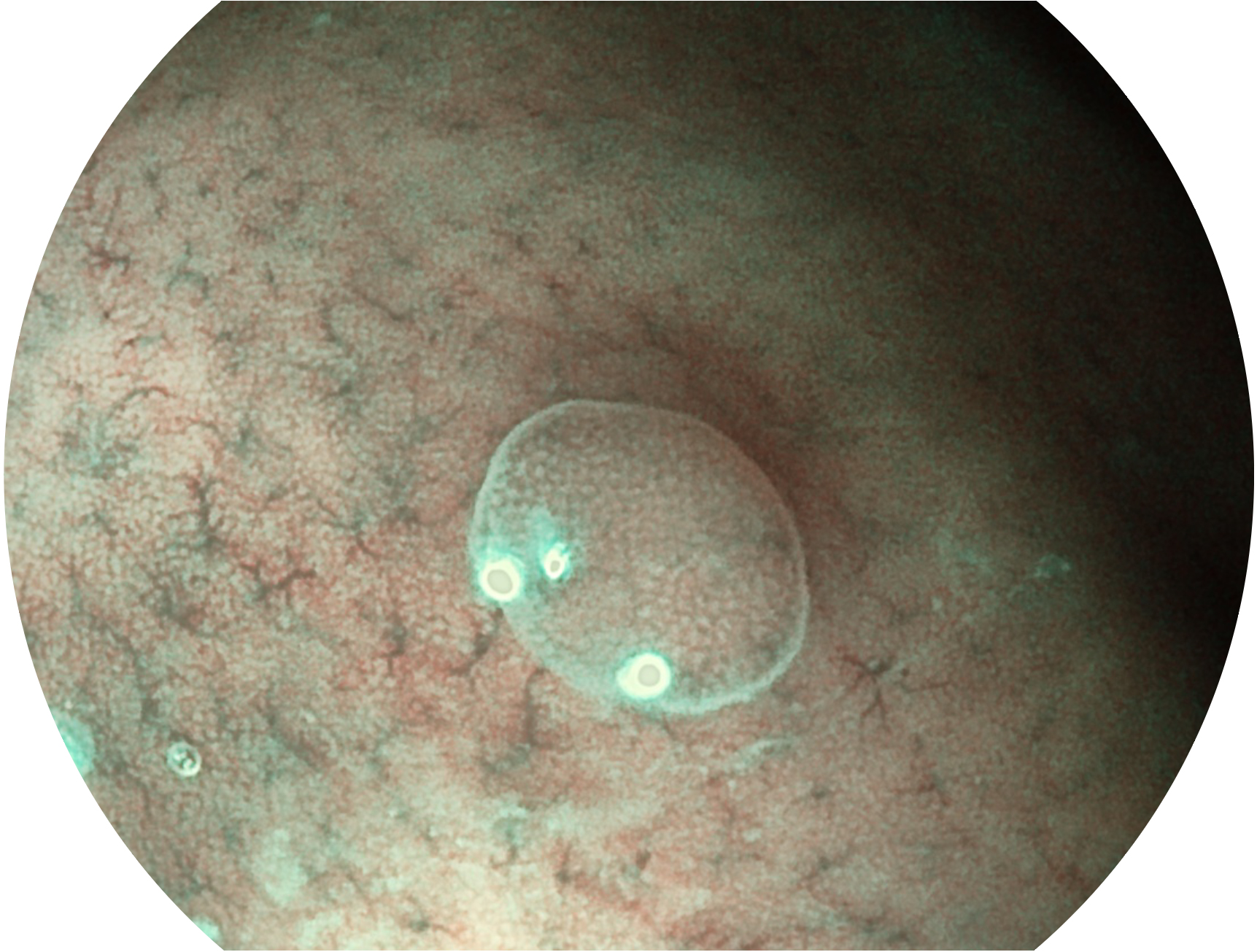 與上一代VIST相比,摒棄了濾光轉(zhuǎn)輪而直接采用光譜組合的方案,加入了血紅蛋白吸收高峰與次高峰的藍(lán)紫光和綠光光譜,更有利于黏膜血管吸收,突顯淺表層血管和中層血管的對比度,因而具備更高的圖像對比度,近景觀察時(shí),有助于微細(xì)結(jié)構(gòu)變化及病灶邊界的觀察。