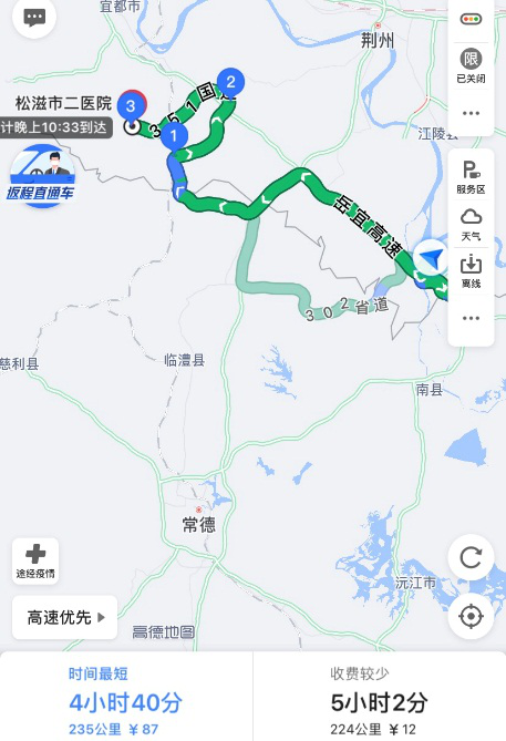 松滋市位于湖北荊州,目的地醫(yī)院距離劉濤老家石首市大概5小時車程