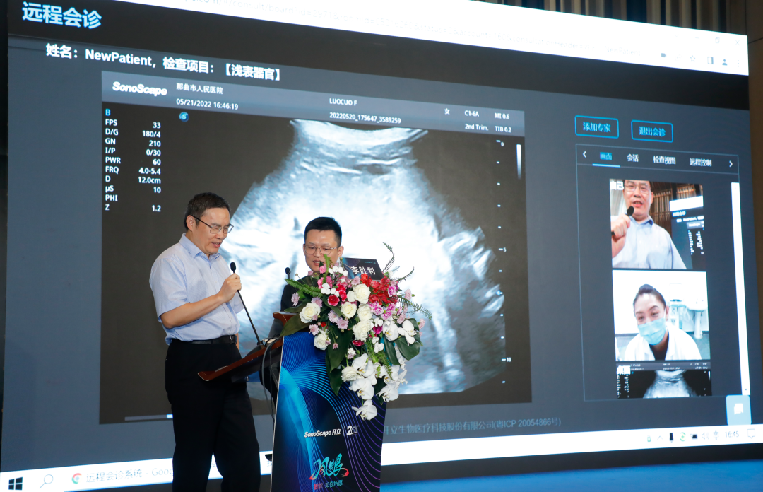 現(xiàn)場(chǎng)還使用開立“云影會(huì)”遠(yuǎn)程會(huì)診系統(tǒng)進(jìn)行了演示,特別邀請(qǐng)李勝利教授對(duì)西藏那曲市人民醫(yī)院嘎措主任的產(chǎn)前超聲AI檢查進(jìn)行了遠(yuǎn)程點(diǎn)評(píng)。位于“世界屋脊”的嘎措主任應(yīng)用“鳳眼S-Fetus”功能進(jìn)行了現(xiàn)場(chǎng)超聲掃查,由身在鵬城的李勝利教授對(duì)掃查圖像質(zhì)量進(jìn)行了點(diǎn)評(píng)。該環(huán)節(jié)中李教授表示“鳳眼S-Fetus”自動(dòng)抓取的切面圖像質(zhì)量可以對(duì)標(biāo)三級(jí)醫(yī)院,給予了嘎措主任極大信心。
