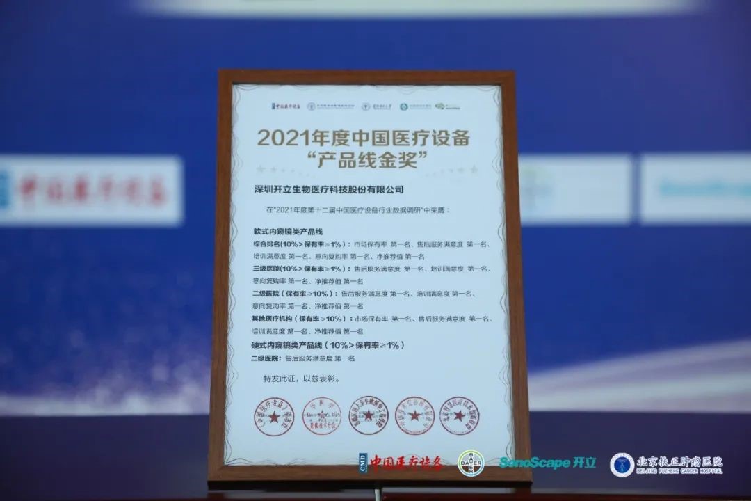 同時,開立醫(yī)療還榮獲了中國醫(yī)療設備“產(chǎn)品線金獎”,在超聲影像類產(chǎn)品線與內窺鏡類產(chǎn)品線評比中名列前茅,其中軟式內窺鏡類產(chǎn)品線憑借卓越的產(chǎn)品質量、優(yōu)秀的服務滿意度及市場保有率等多個維度上均排名第一。