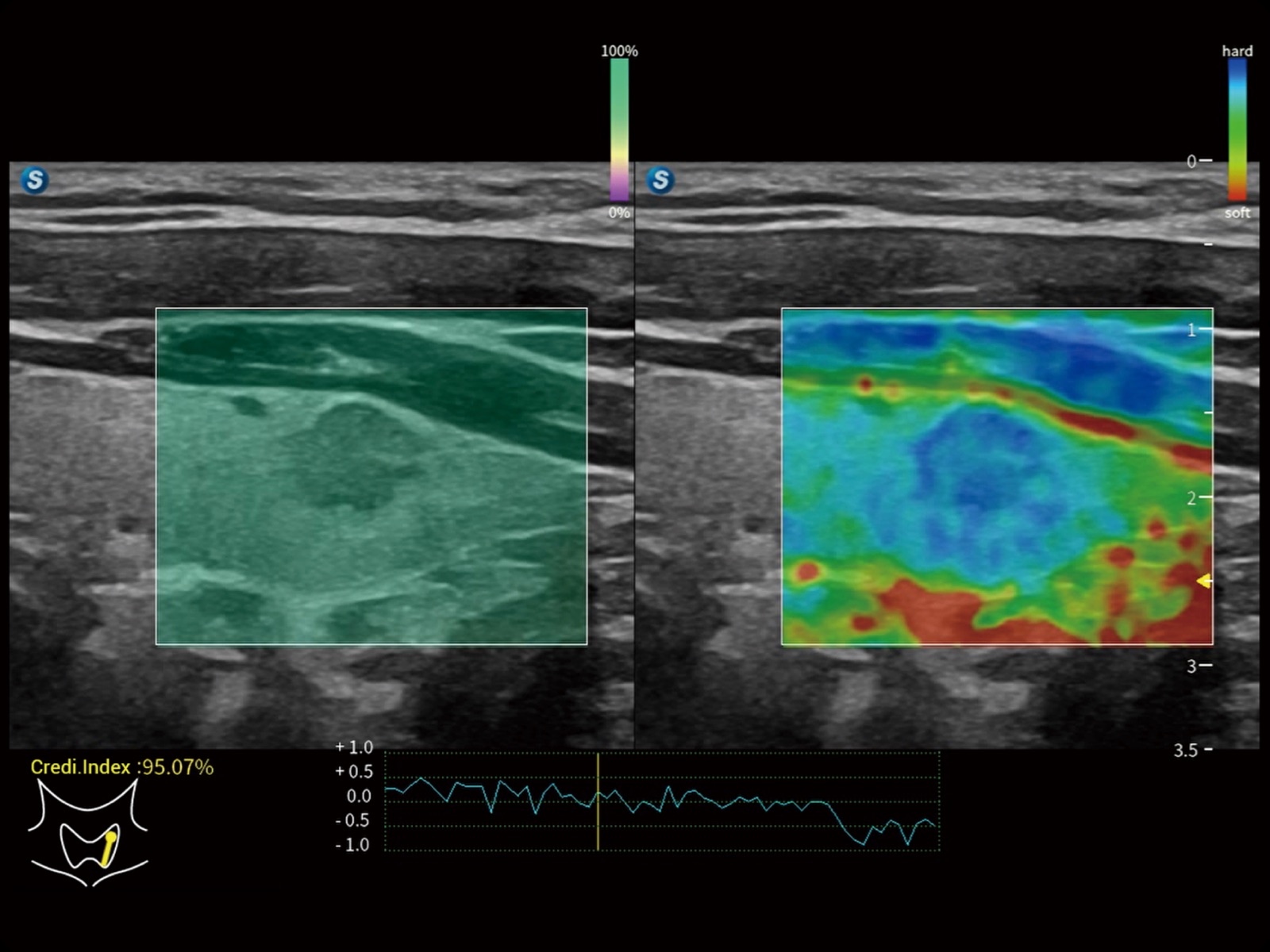 通過光照模型,使二維血流顯示出立體的效果,增加血流的敏感性、成束性,減少外溢。可以和其他不同的血流技術(shù)聯(lián)合使用,輕松應(yīng)對(duì)微小血管,增強(qiáng)血流的立體效果,提升視覺敏感性。